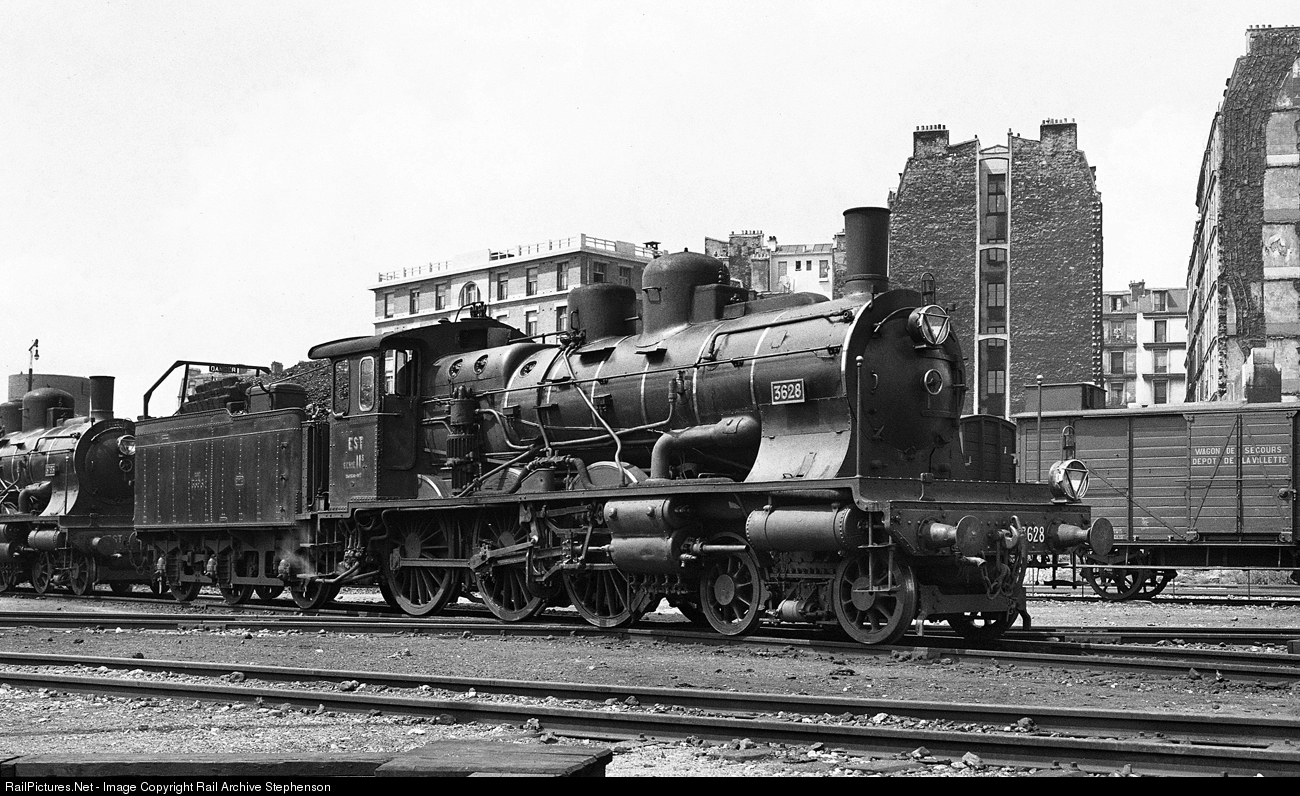 | Est Railway 4-6-0 No 3.628 at La Villette shed, Paris in 1935. There were originally 390 of these four-cylinder compound locos built for the Est Railway in 1901-12. They became SNCF type 230B and three of the last survivors starred in the film The Train with Burt Lancaster shot in 1964. Sadly none of the three engines survived. Photo by the late George Grigs. |