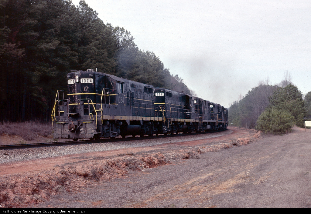 Seaboard Coast Line GP9 #1024, with three GP7's and a GP40, leading local train #501 from Atlanta, Georgia up to the holdout signal at Franklin Street. #1024 was built September 1956 as Seaboard Air Line #1925. Became a GP16 rebuild as Seaboard System #4645 and later CSX #1745. After leaving roster, unit became R. J. Corman (RJCR) #1745 and later Aberdeen, Carolina and Western Railway (ACWR) #1601