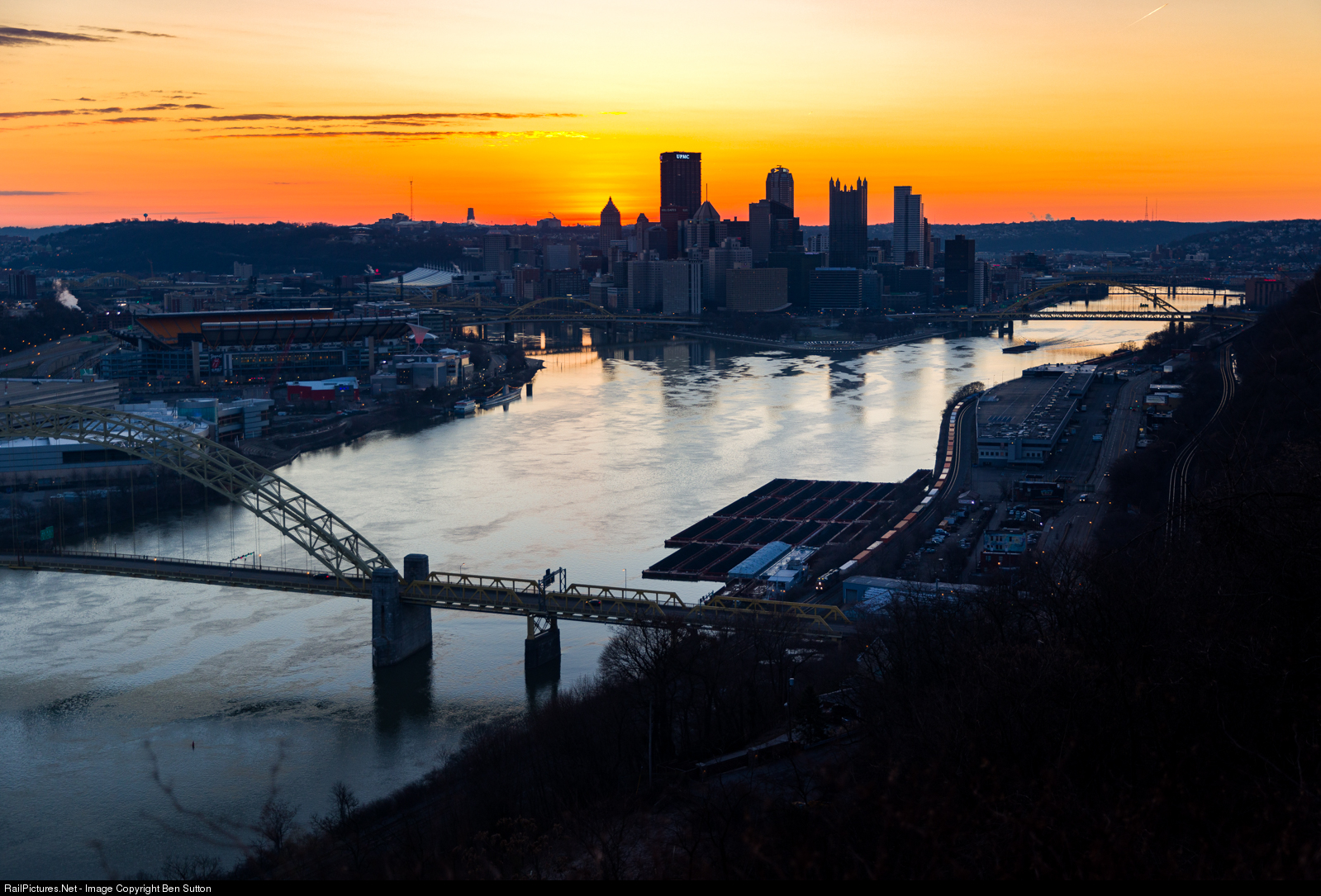 Moments before the sun rises over the great city of Pittsburgh PA, Q137 races along the Monongahela and Ohio Rivers.