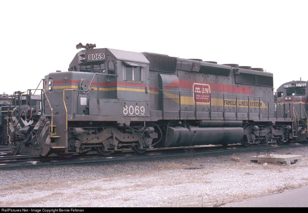 Seaboard System SD40-2 #8069 in the Boyles Yard Service Center. #8069 was built October 1979 as Louisville & Nashville #8069