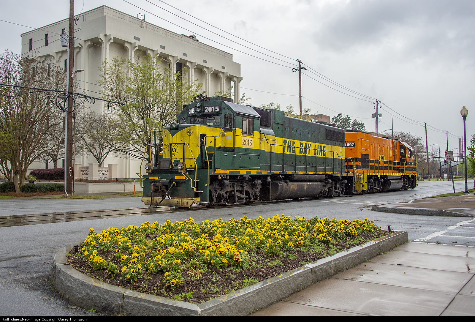 Columbus and Chattahoochee Railroad's afternoon "Brickyard" job eases down a soggy 9th Street in Columbus with light engines enroute to serve several customers on the Alabama side of the river.