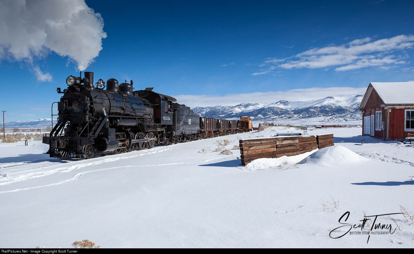 NCCCo #93 brings a string of empty ore cars into the East Ely yard. In the two decades I've visited the NN, #93 has been lettered for three different entities - "Nevada Northern", "NCCCo" (Nevada Consolidated Copper Co.) and, currently, "KCC" (Kennecott Copper Co.). From the second 2009 winter photo weekend.