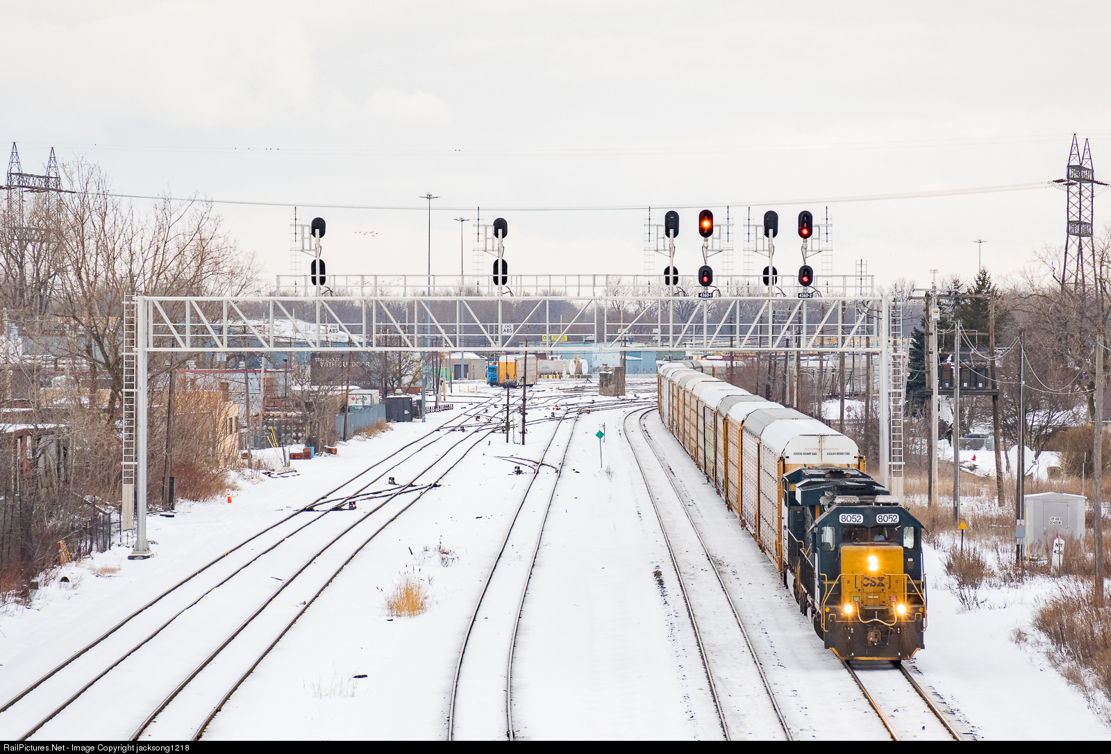 CSX train Q263 (East Brookfield, MA - O'Bannon, KY) accelerates out of Buffalo's Frontier Yard after receiving a new crew. Leading the train is ex SCL EMD SD40-2 number 8052, which was built in 1979. Over 40 years later, the locomotive is still logging miles hauling through freight trains across the CSX system.