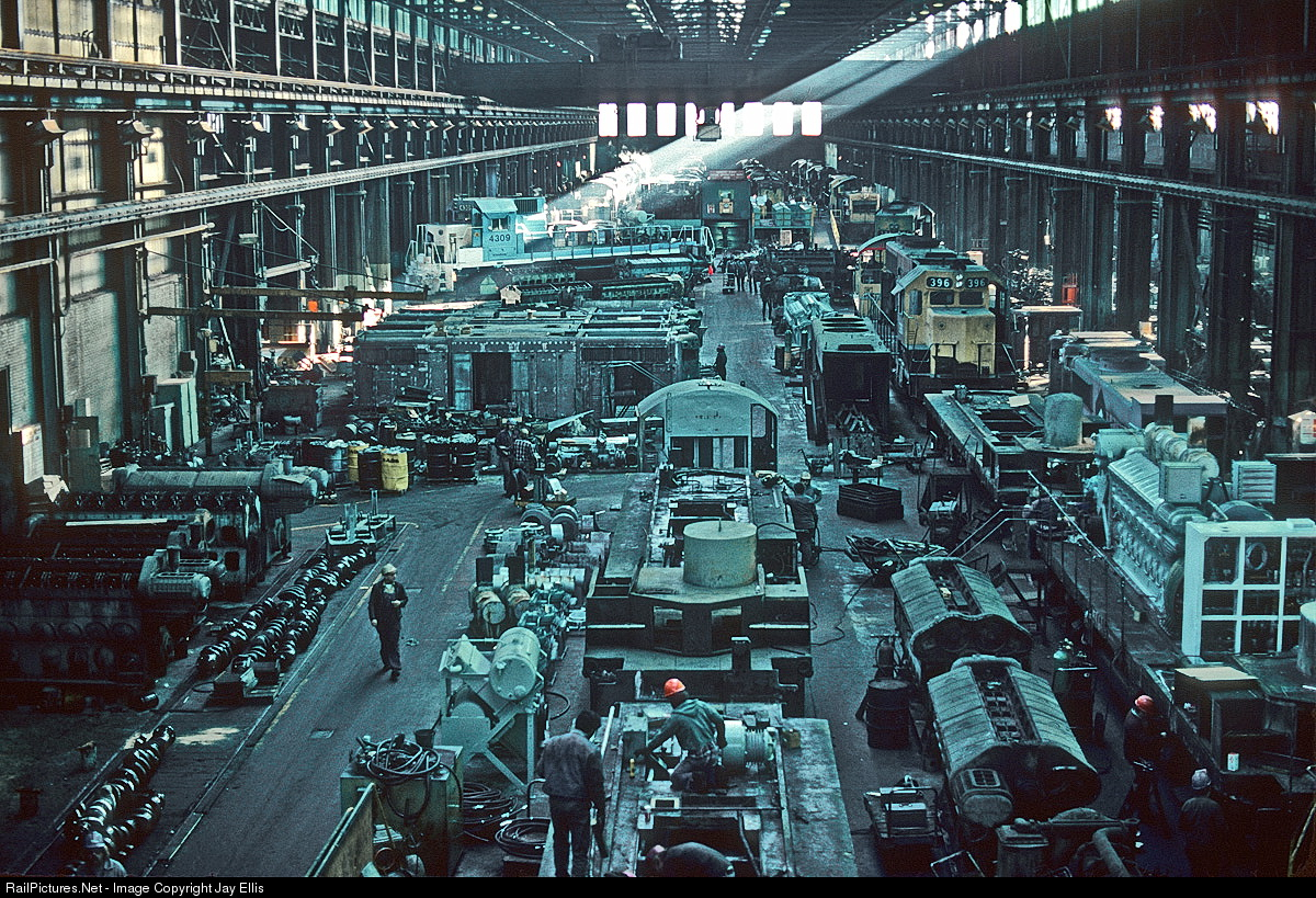 Rock Island Lines Silvis Shop is busy place in this picture. In the foreground four GP7 frames for the Conrail rebuild program. GP38-2 4309 is on one of the frame straighteners for an engine change. With parts and pieces everywhere to advance the work. Fourteen months later it would all be gone when the Rock shut down.