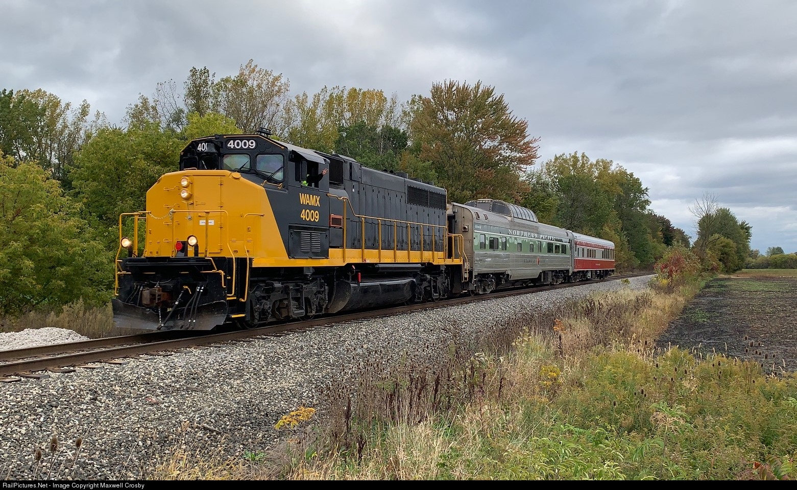 We see Canadian Built wide-cab GP40 #4009 leading the two car special south on the northern half of the railroad, which is ex. PRR and GR&I in origin. The last time this railroad saw any regular passenger service was in the early 1960's and since then has seen virtually nothing close to any regular passenger service of any kind since.