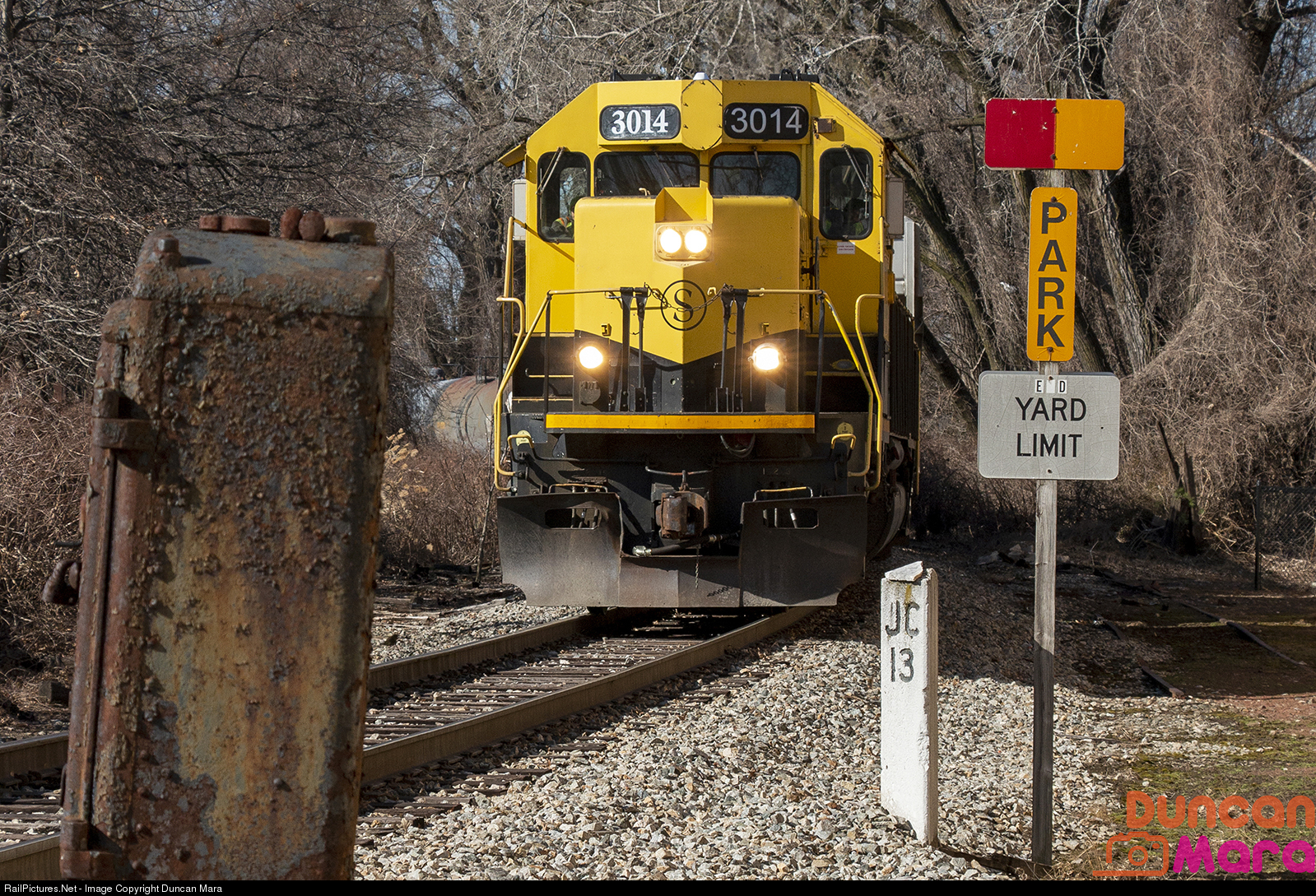 With SD40T-2 #3014 in the lead, NYS&W WS-X pauses at Division Point PARK west of MC Yard at Bogota, NJ. Another West Shore local was drilling on the main in the yard, blocking their passage to the east. PARK marks the end of the yard limits east of here and the Southern Division Mainline to the west.