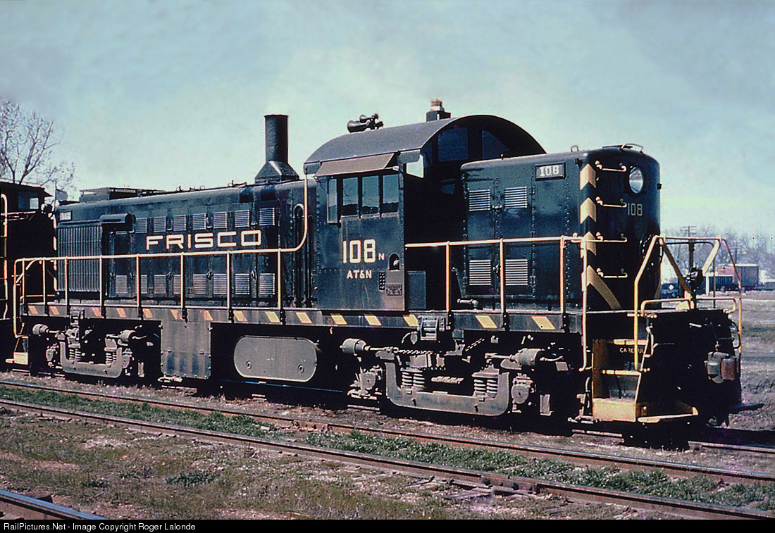 Frisco purchase the Alabama, Tennessee & Northern Railway in 1948, and also acquired eleven new Alco RS-1's nos. 101-111 with "AT&N" sublettering. Photo from my slide collection, no photographer listed on slide.