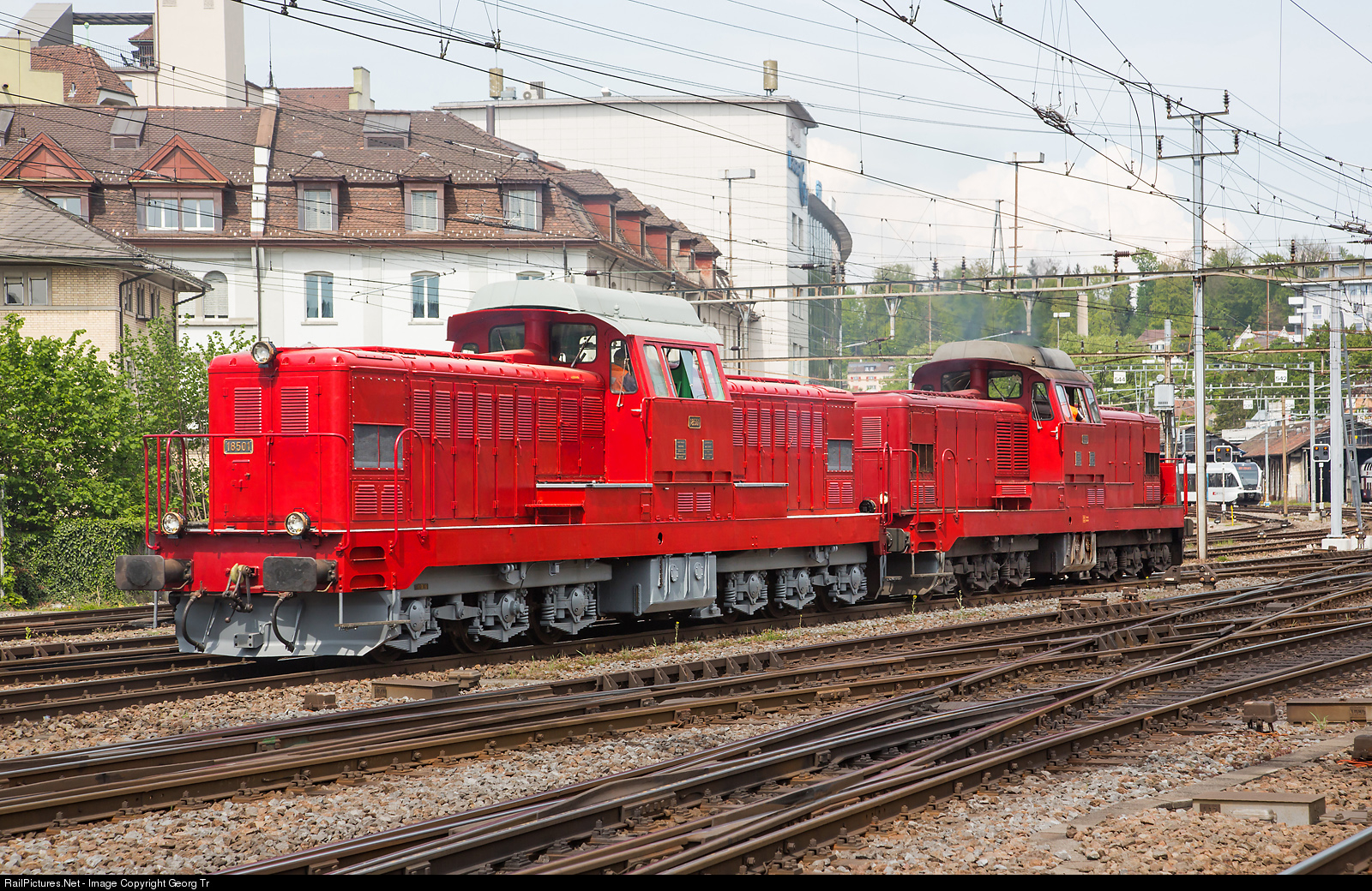 | The 2 diesellocomotives Bm 6/6 # 18501 and # 18511 of the Schorno-Locomotive-Management SLM Gmbh are running from Winterthur to Oberwinterthur. The colors of the locomotives are not the red brown, as most had when running for the SBB, but an attractiv raspberry-red, which liked the present owner most. |