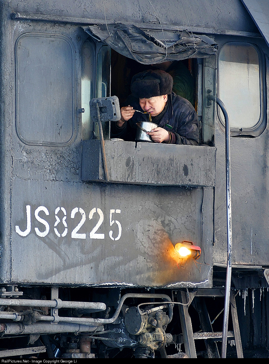 The morning shift has just gotten underway and in this photo we see an engineer eating his breakfast from the confines of the some what warm cab.
