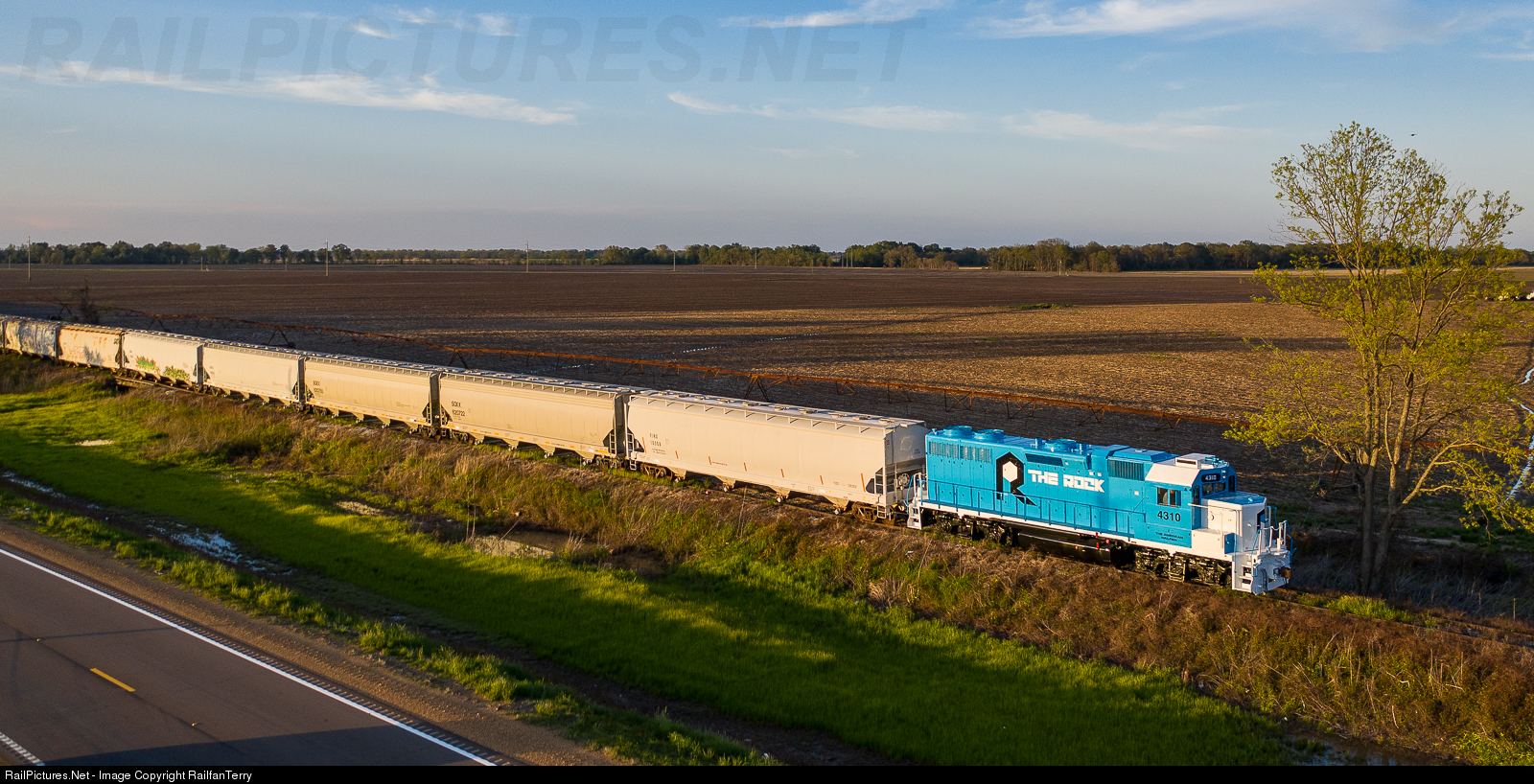 Drone Shot of RILX #4310 just painted in Rock Island heads south for Swan Lake, MISS in the late afternoon sun, Thank to Robert J. Riley for bring The Rock back to the rails