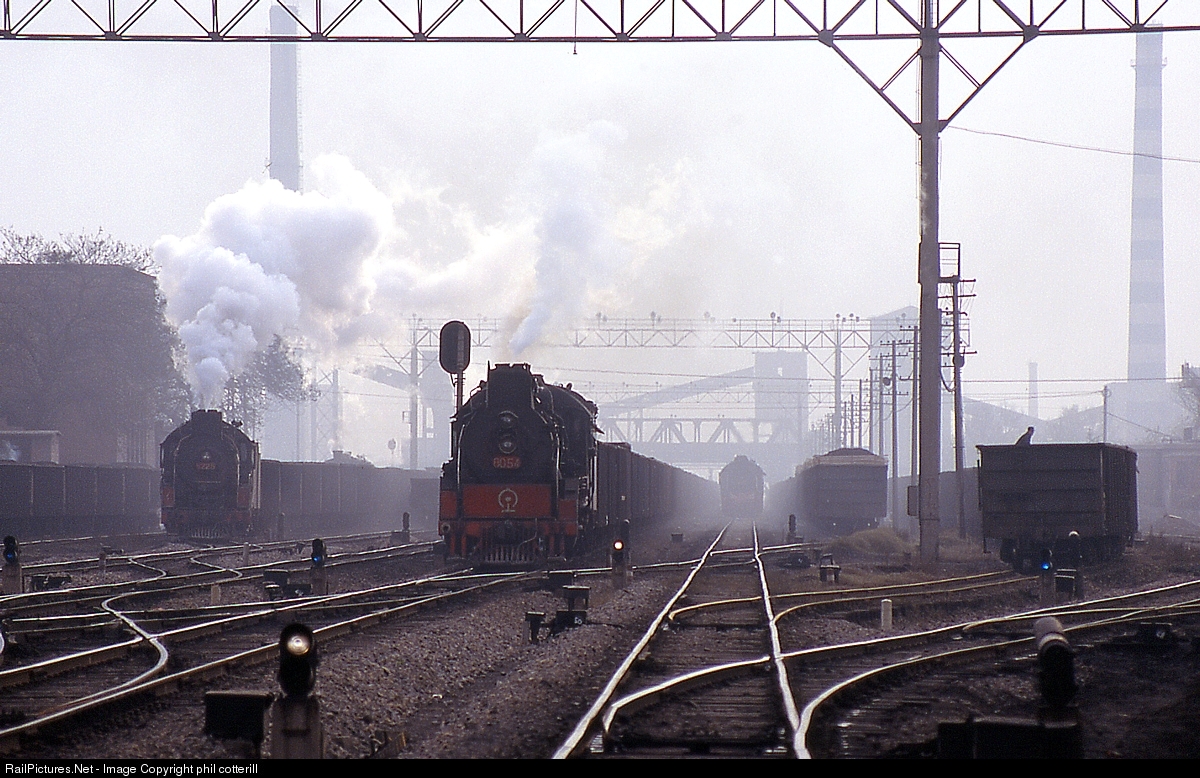 | In the industrial smog at Pingdingshan, 4 steam locos are seen at work in November 2003. |