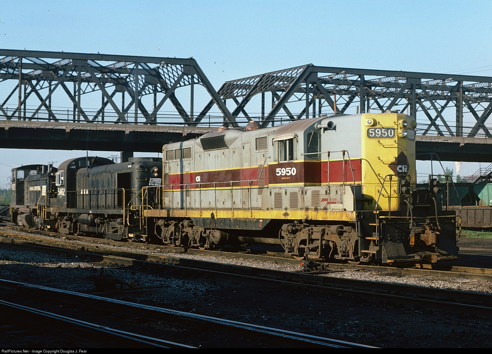 | Morning Yard/Transfer Power heads east out of Seneca Yard with an ex-EL GP7, PC RS3 5462 and a PC SW1500. |