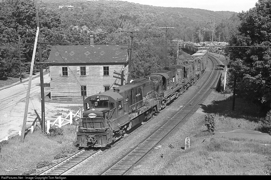 Penn Central train NS-1 (New Haven/Cedar Hill to Selkirk via Springfield) climbs the Berkshire hills through Huntington, MA behind an ex-NYC U25B and an ex-NH RS-11, RS-3, and GP9.
