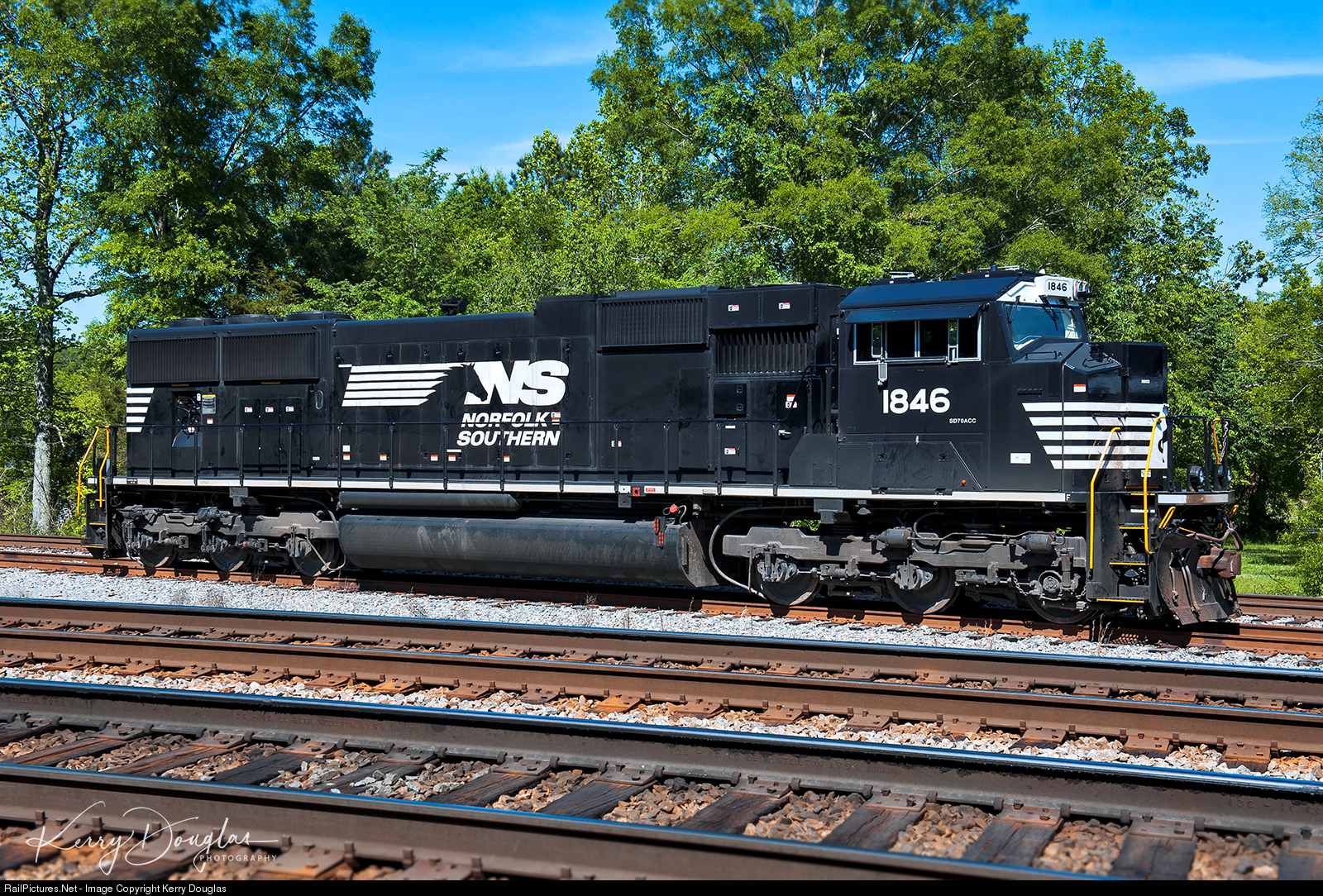We're getting a opportunity to get a closer look, and a roster shot of premier locomotives that was recently rebuilt. The SD70ACC were rebuilt from the SD70 series that was purchase by Norfolk Southern from the early to mid 1990s. The upgrade range from AC traction motors, electrical cabinet with Mitsubishi electronics, a new main alternator, and additional weight was added to increase the maximum weight to 432,000 pounds when fully loaded with supplies, to the newly designed cab. NS 1846 has apparently been sitting on the house train in Cohutta, GA on the NS Cohutta District (I-Line) since Wednesday. When this image was taken the next day NS 223 would pick up the locomotive, and take it south. A nice treat to have sitting in the small community.