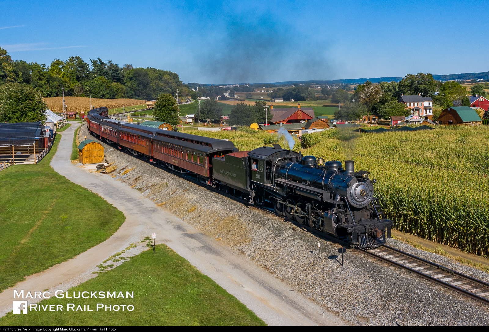Decapod. Strasburg Rail Road #90 (ex-Great Western Railway of Colorado #90, 2-10-0, Baldwin, 1924) leads an eight car train that has just passed Cherry Hill Road by Cherry Crest Adventure Farm in Ronks, Pennsylvania on September 15, 2019. This engine is just one of two operating "Decapods" (ten driving wheels) in the United States.