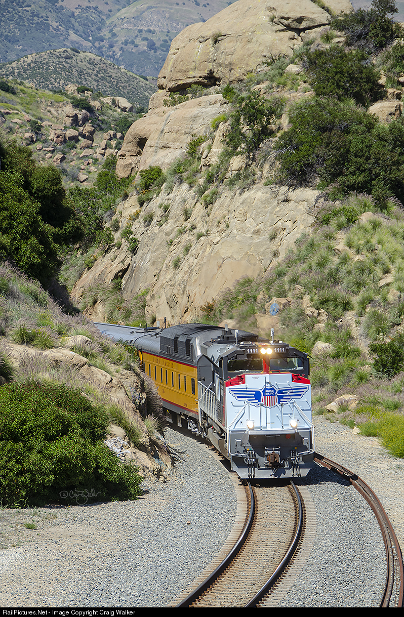 See beautiful diesel locomotives in UP's traditional armour yellow livery and special commemorative paint schemes pulling long trains of yellows cars reminiscent of the days when UP domeliners seemed to go Everywhere West.