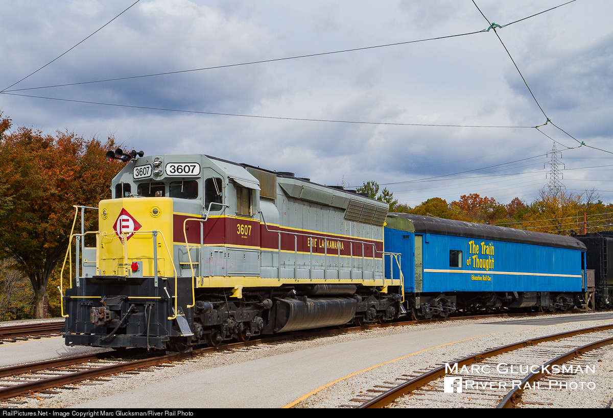 Original EL. Before Norfolk Southern repainted its younger cousin, The National Museum of Transportation in St. Louis, Missouri, undertook a cosmetic restoration of former Erie Lackawanna SD45 3607, as seen on October 27, 2011. This engine served on Conrail as well before making its way to the museum. It is coupled to the "Train Of Thought: Education Rail Car", which is often used for visiting school groups.