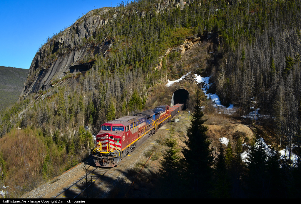 Quebec Cartier 27 and 17 are seen exiting the north portal of tunnel 29.57