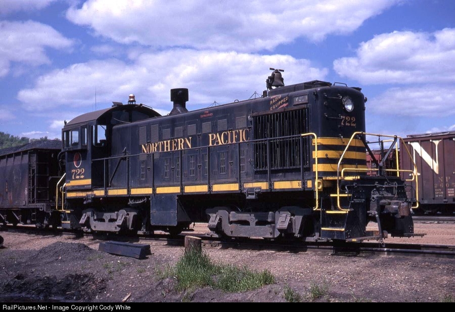 Northern Pacific S4 722 switching Rices Point Yard in Duluth June 1970. The 722 was built in December 1953 and retired in August 1972. These Alco S-Series switchers were the backbone of the NP in Duluth from the 50s to the early 70s. They were perfect for some of the light rail and sharp curves found at some Duluth industries. Russ Porter Photo from my Collection.