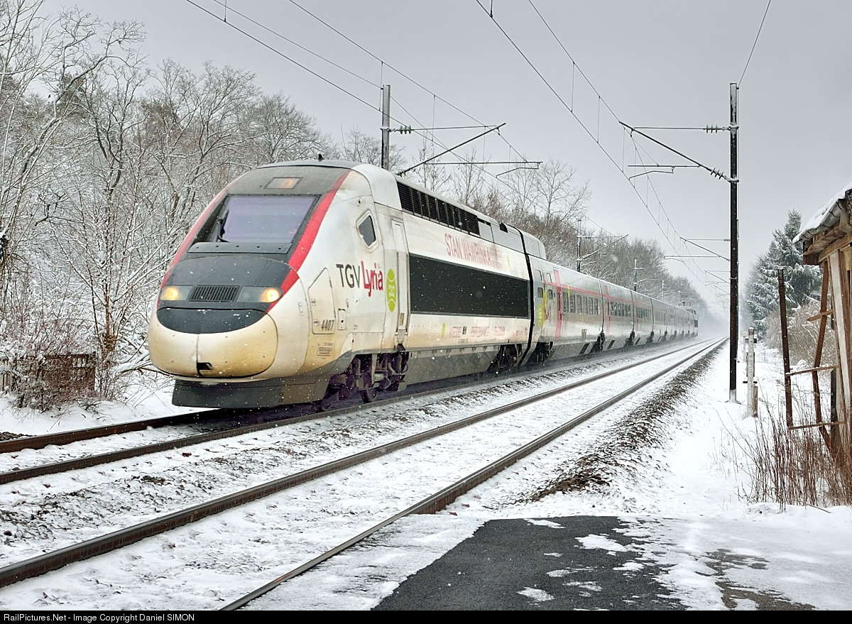 RailPictures.Net Photo: 4407 Lyria TGV POS at Between Basel and Mulhouse, France by Daniel SIMON