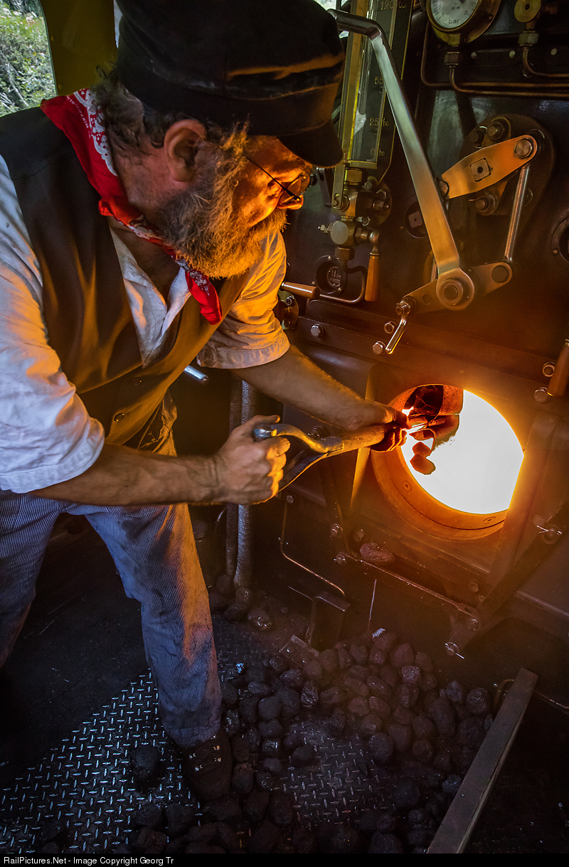 Firing the most powerful cogwheel steamlocomotive of Europe, the 0-8-0 HG 4/4 # 704 of the DFB with 800 HP.