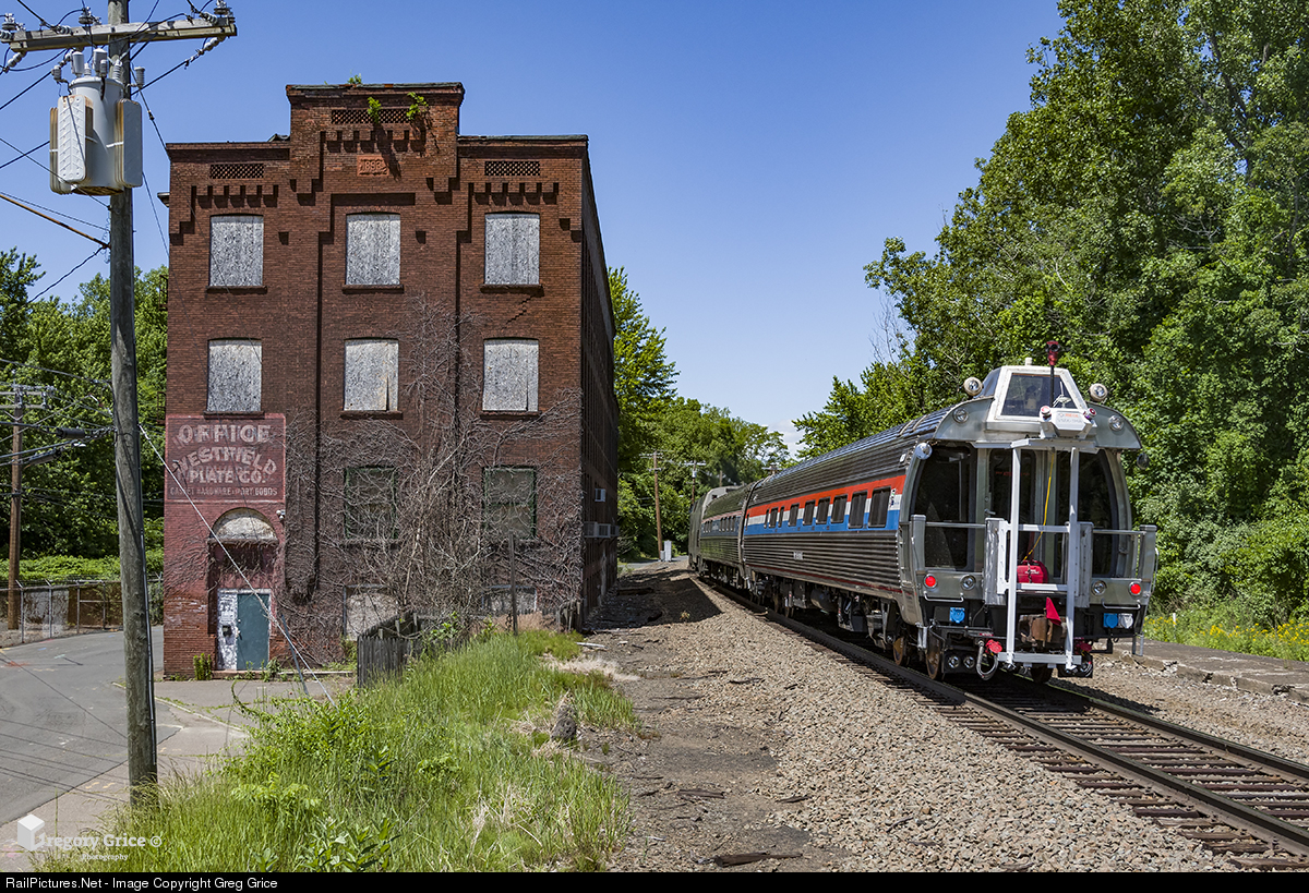 Amtrak's LiDAR Test Train heads north past the old Westfield Plate Casket Company building on the MRS Line in Enfield, CT. On the rear of the train is Amtrak #10001, "Bear Delaware", which has been recently rebuilt and outfitted with a state-of-the-art RIEGL VMX-1HA LiDAR scanning system. This system will be used for Transportation Infrastructure and Rail mapping. Detailed information on this specific system and LiDAR in general can be found in the links below. RIEGL VMX-1HA Information: http://www.riegl.com/uploads/tx_pxpriegldownloads/RIEGL_VMX-1HA_at-a-glance_2017-05-04.pdf