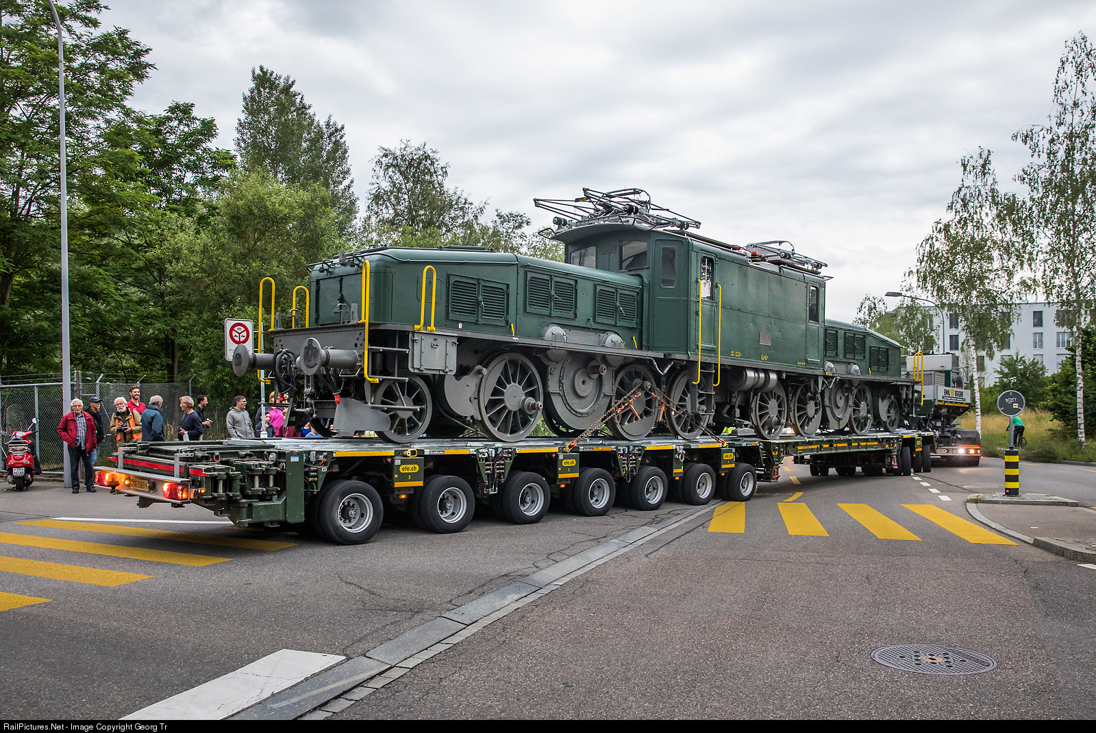 More then 7 years after the "crocodile" Ce 6/8 II # 14270 of SBB Historic was removed from the exhibition place in Erstfeld (see https://www.railpictures.net/photo/720937/ ), the locomotive was transported on a road low loader to it's new final destination in the quarter of Zürich Oerlikon, where the electric parts were fabricated by the MFO (Maschinenfabrik Oerlikon) about 100 years ago. The locomotive left Erstfeld in april 2017 to Biel, where it was refurbished outside only and was then moved to Zürich Seebach in february 2018. Now it is placed in front of the pwc (Pricewaterhouse Coopers) building at the crossing of the Birch- and the Binzmühle street.