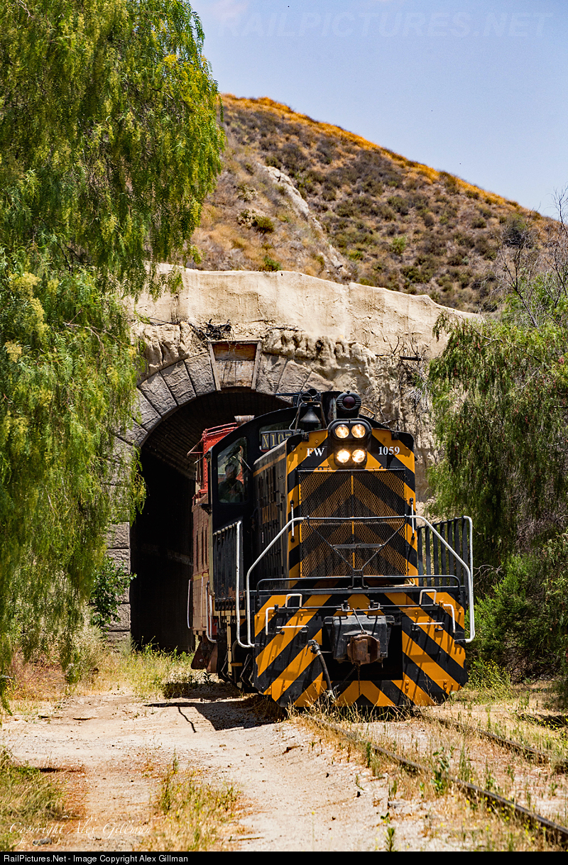 With its job shoving a string of 10 tank cars into storage complete, Fillmore & Western 1059 leads a sole caboose, which served as a buffer car for the move, out of the railway's only tunnel back west for Fillmore.