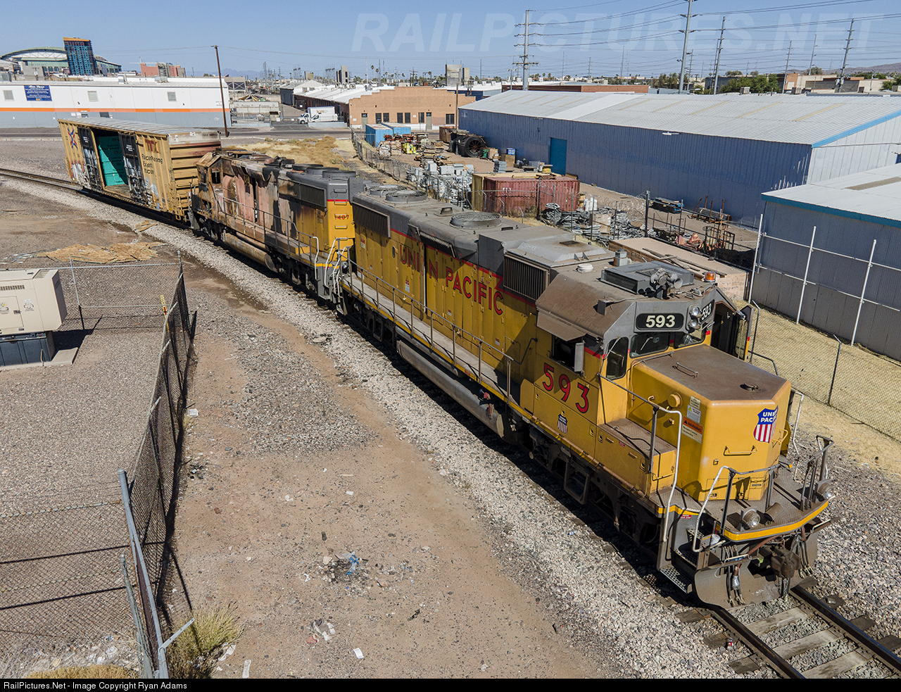 After a firey incident the night before, the UP 593 & chared UP 1407 sit just a few dozen yards away from the scene of the incident. The cause is still unknown, all that is known is the crew is fine and there was a derailment leading to a diesel fire.
