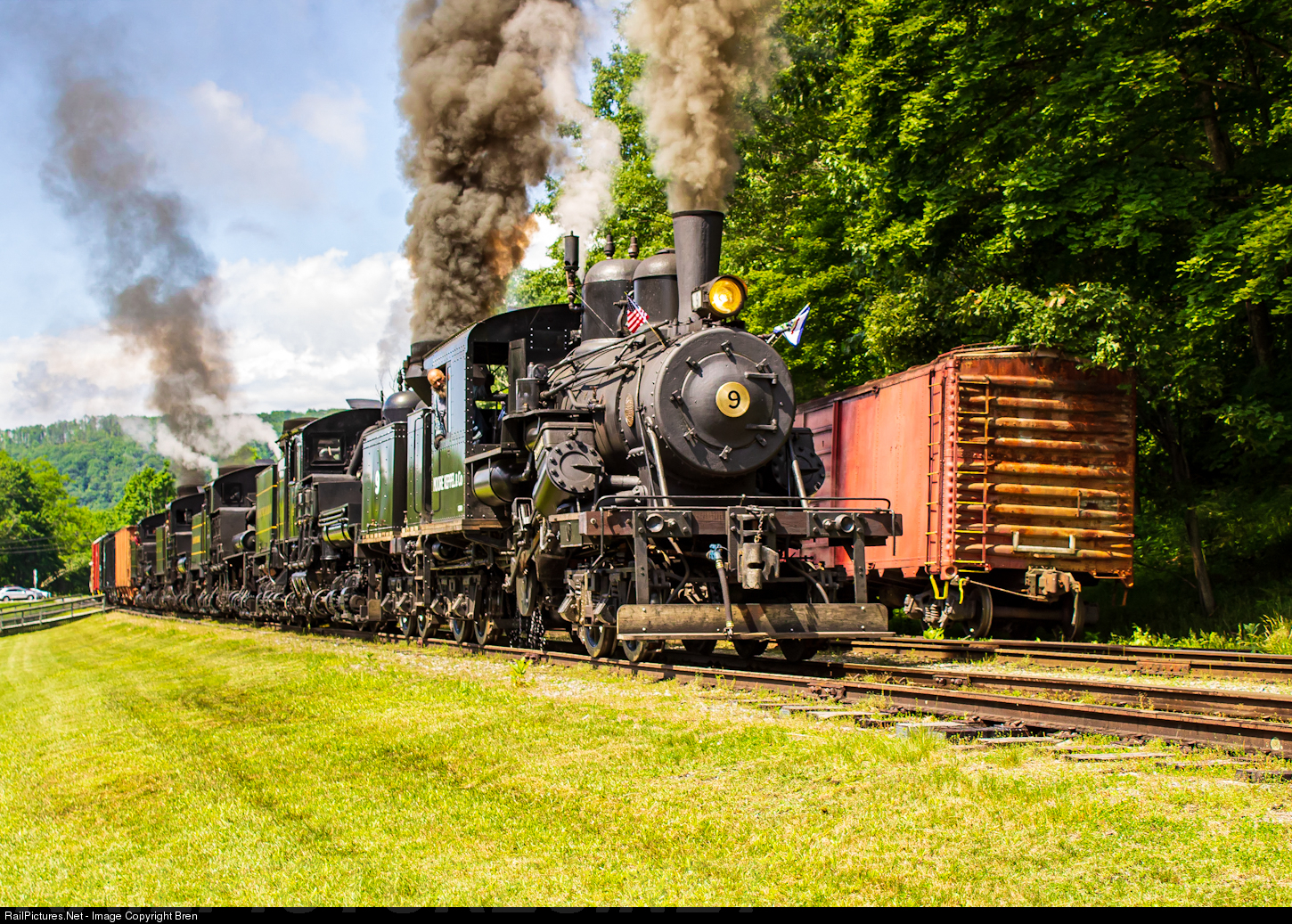 For the very first time, Cass runs a 5 pack of steam locomotives with Climax number 9 heading up the show on this first ever quintuplet Freight parade on West Virginia Day.