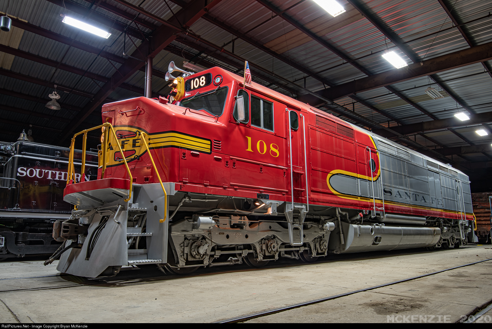 Recently restored Santa Fe FP45 rests overnight in SCRM's Carbarn Seven. This locomotive was backdated to it's as delivered appearance by museum volunteers. The hard work of the restoration team really payed off and the locomotive is now a staple of the museums collection.
