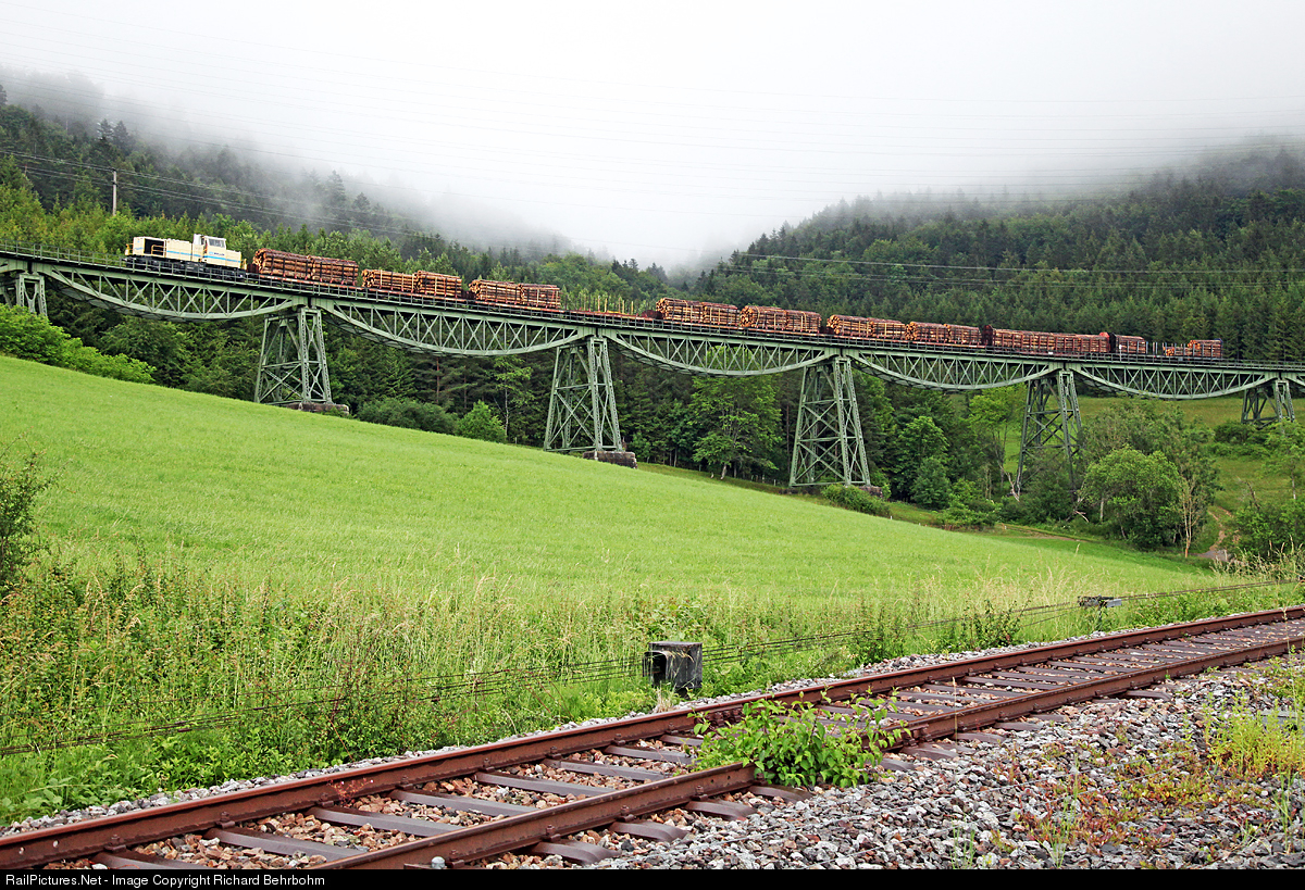 | On a rainy day the first freight train on the "Sauschwänzlebahn" is running since 65 years. The train is crossing the Biesenbachviaduct, one of four great viaducts on the railway. |
