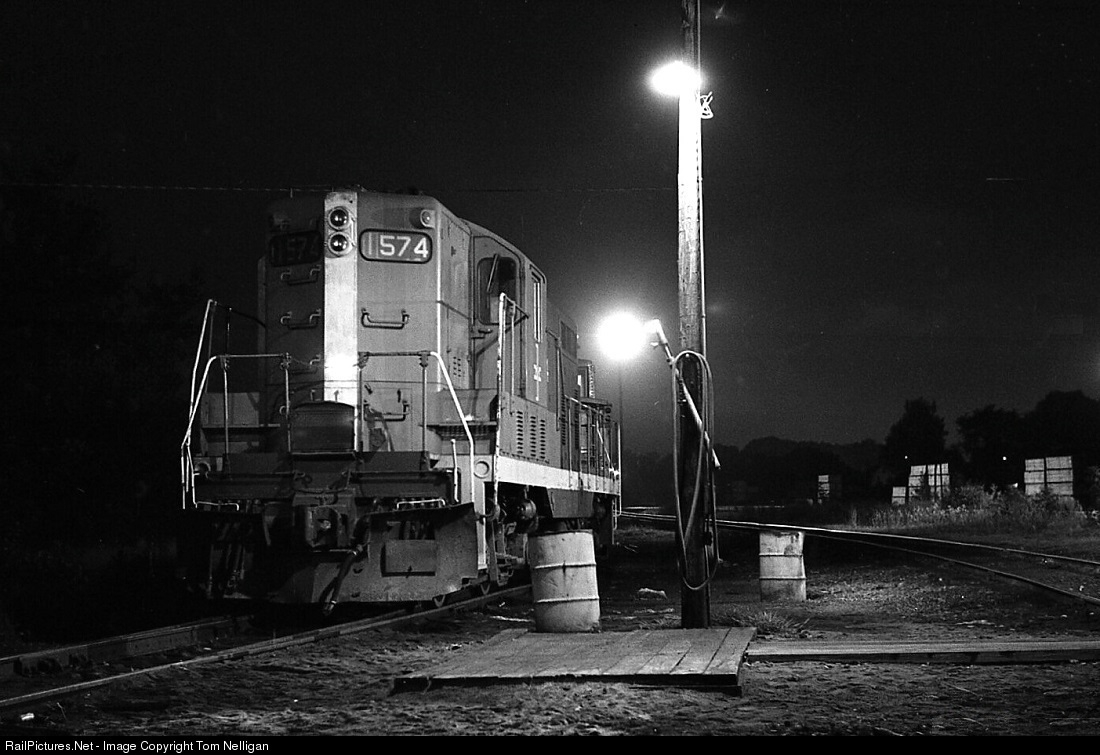 | In the predawn quiet at White River Junction, VT, Boston & Maine GP7 waits out the night on the service track behind the station. In the morning it go to work with Connecticut River Line local freight J-1. |