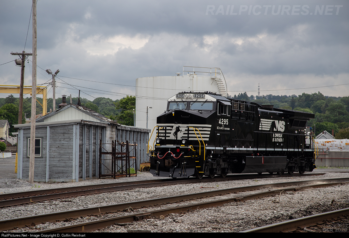 | As a summer storm begins to form over the area, NS 4295 rests inside the Cresson Engine House. Fresh from the rebuild line at NS's Juniata Locomotive Shop in Altoona, the unit has been placed into coal service in Western PA, until it will be released into general service. |