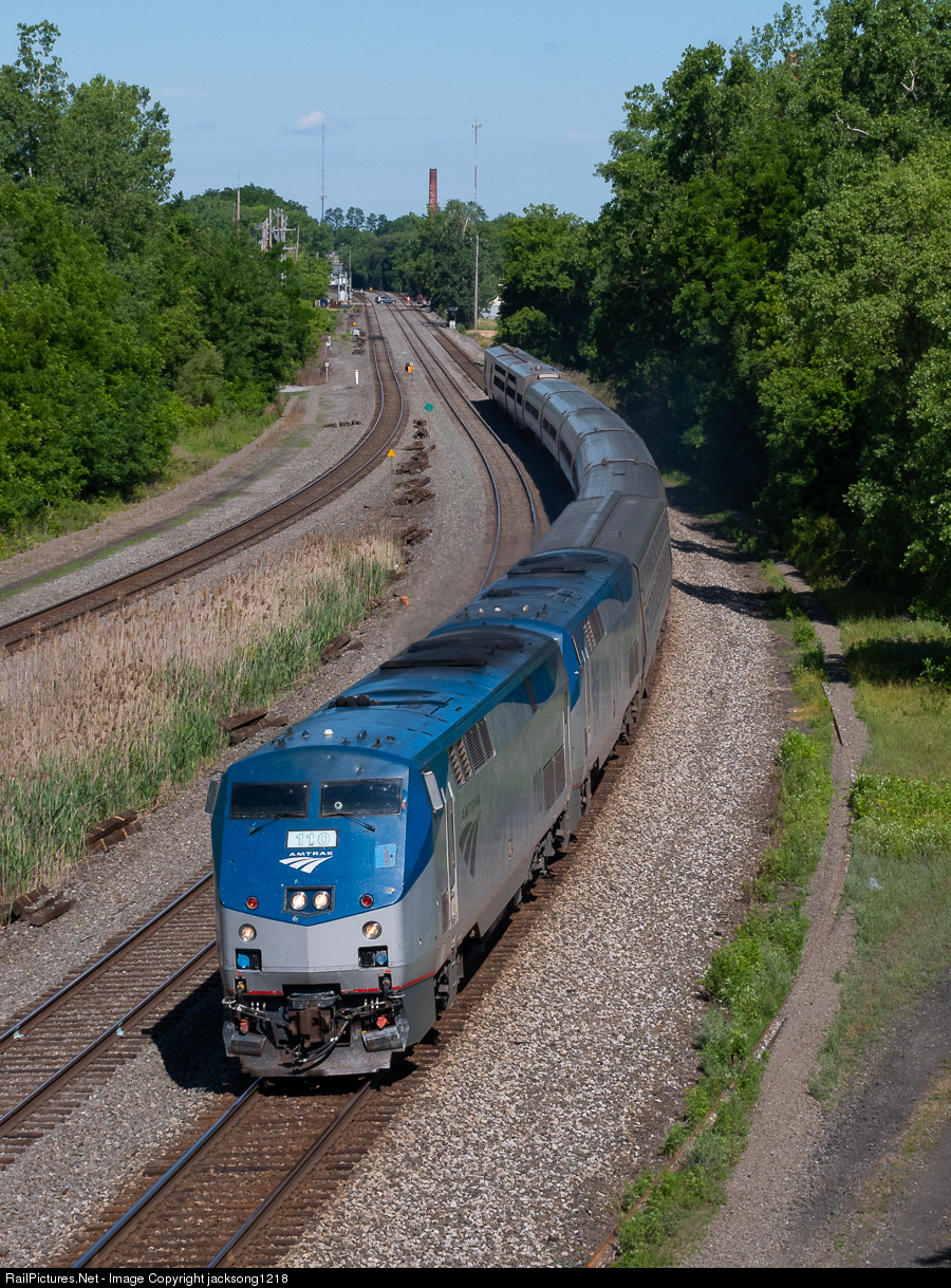 Amtrak train 48 the "Lakeshore Limited" is on time as it flys through Fariport, NY on a June morning. Piloting this train was Engineer Albert, who was on his second to last run before retirement, 281 Syracuse - Buffalo on the same day was his final run.