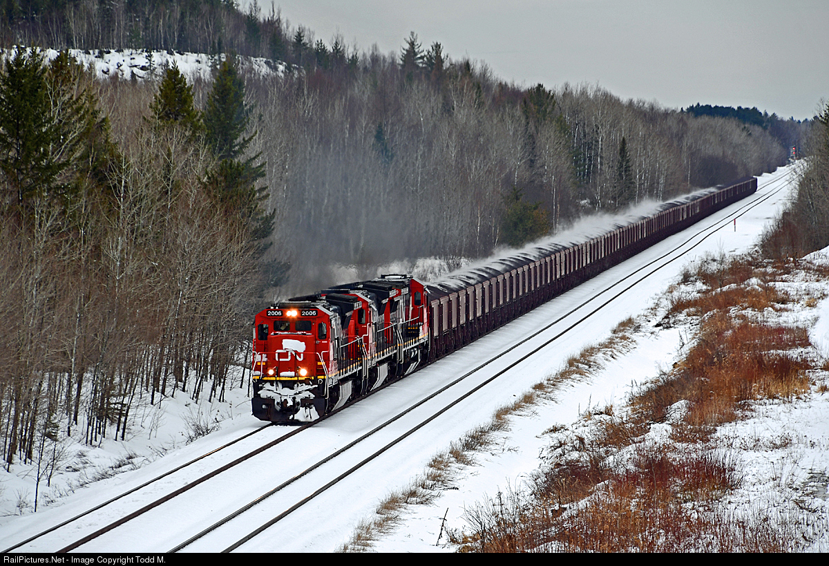 CN 2006 plies the rails of the CN Iron Range sub heading south with Minntac taconite pellets for Two Harbors, MN.