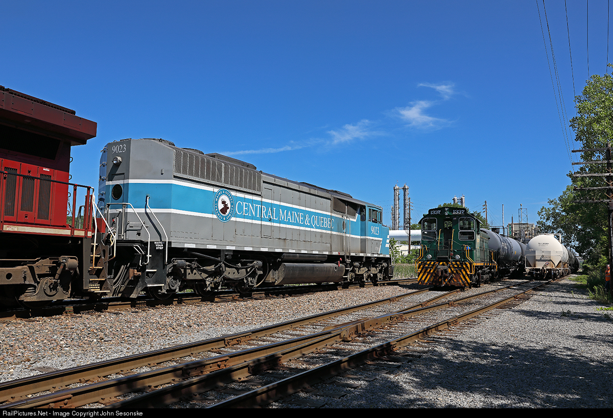 | A Central Maine & Quebec Blue Barn makes an appearance on CP's Saratoga to Albany turn job. The unique draper taper design is highlighted as the 135 car train makes a pick up and set off at Momentive Performance Materials. D48 is meeting the plant switcher (SMS Lines) that switches cars in and out of the large silicone plant seen in the background. The former CP barn likely visited this D&H line prior to being retired by CP and sold to CMQ. But this marks the first time a CMQ unit has run on this line. CP reacquired these units recently with the finalization of CP's purchase of CMQ. |