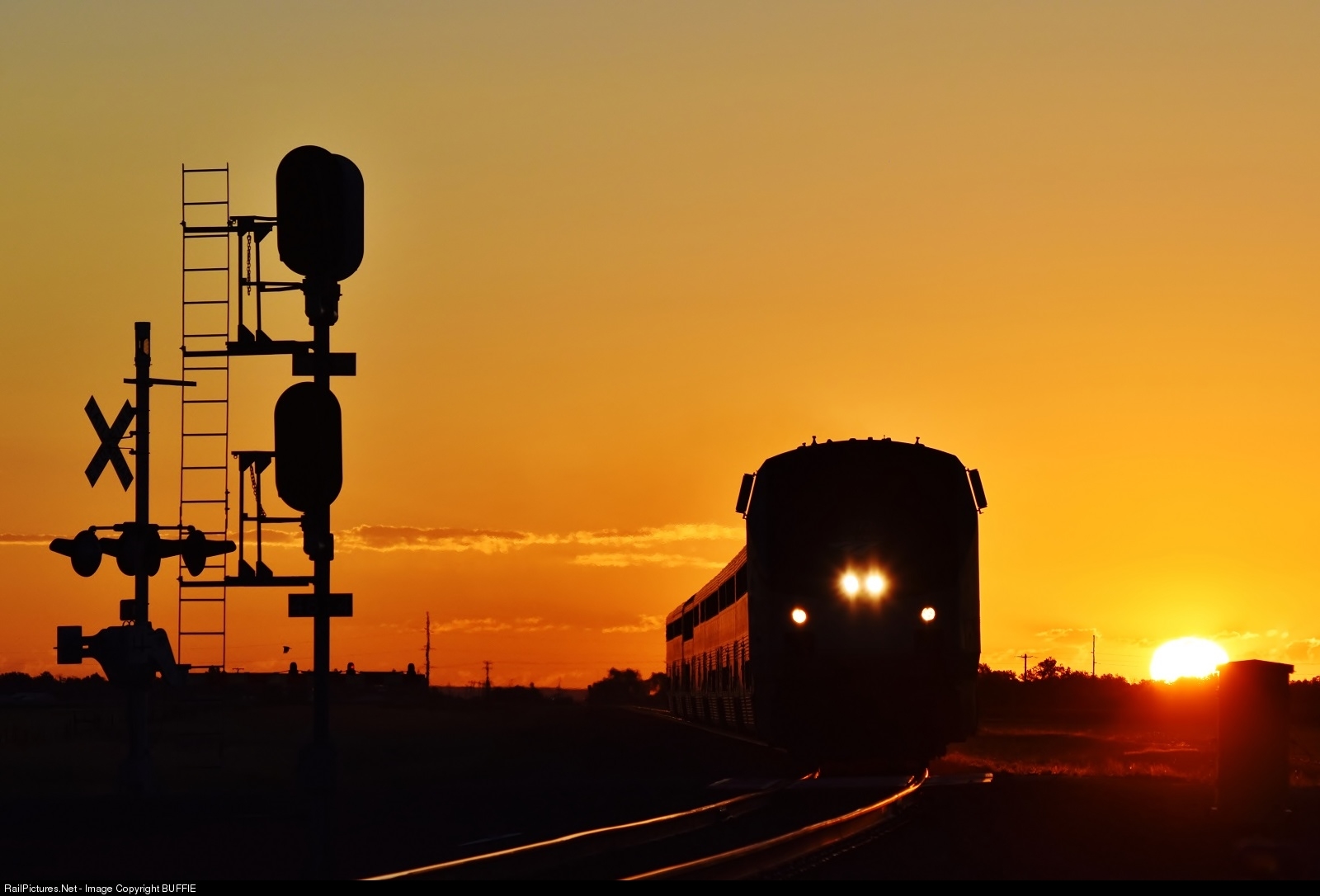 | Mother Nature again provides another stellar sunrise for the riders and crew of the California Zephyr heading to Denver, Colorado. |
