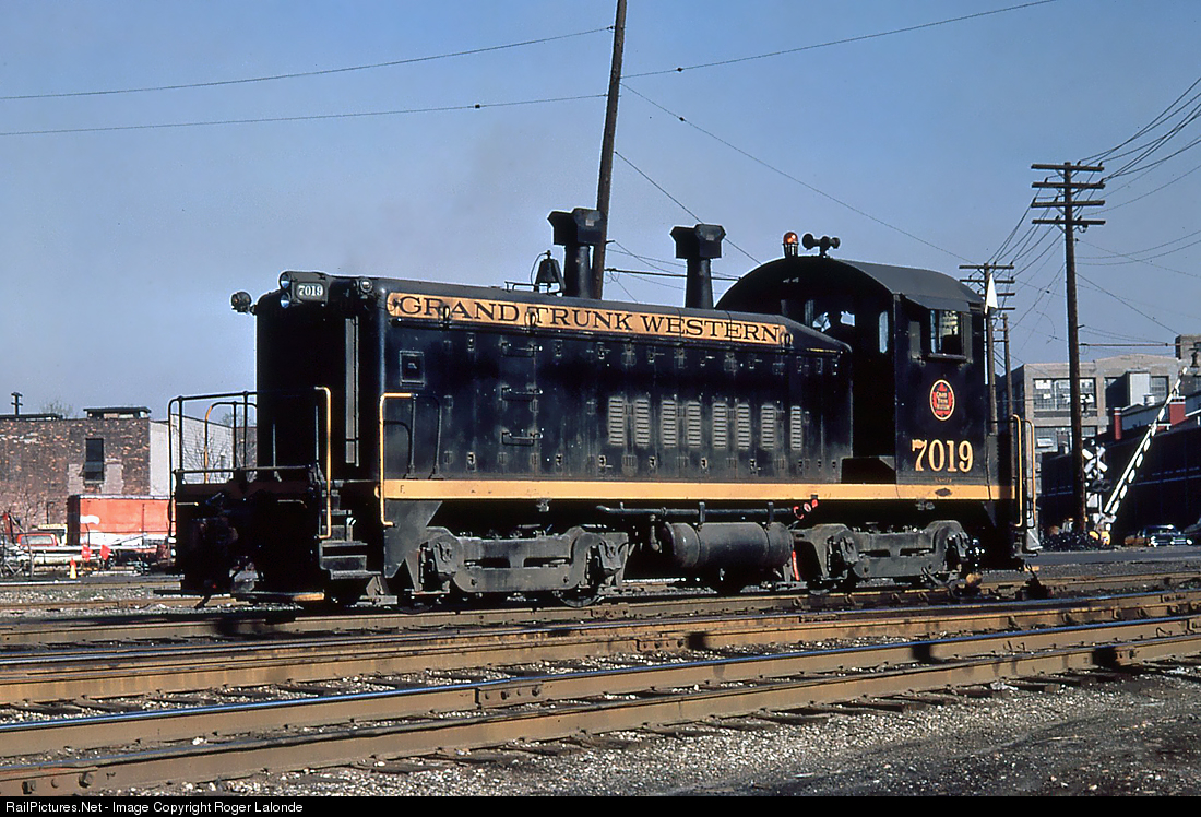 The GTW had two different paint schemes in the 60's applied to EMD switchers, the all Black with Yellow frame strip, road name panel and road number shown here and the Green and Yellow carbody, which was applied to the SW1200 road switchers. Photo from my collection, no photographer listed on slide.