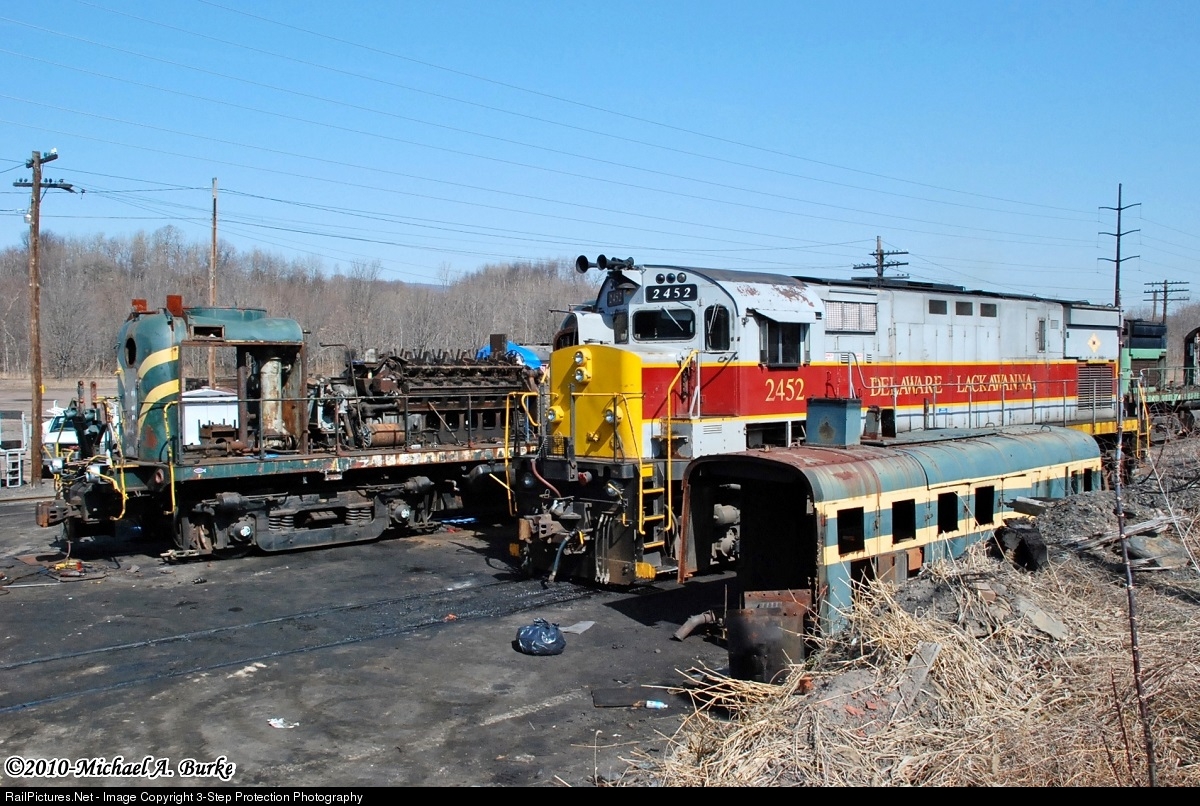 | The rebuilding of Central Railroad of New Jersey Alco RS-3 1554 at Delaware-Lackawanna's Shop in Scranton. The C425 was built in October of 1964 for the Erie Lackawanna. After service on the Erie, it went to the British Columbia Railway as their 802 and then onto the DL, where it was put back into its original EL colors and number 2452. |