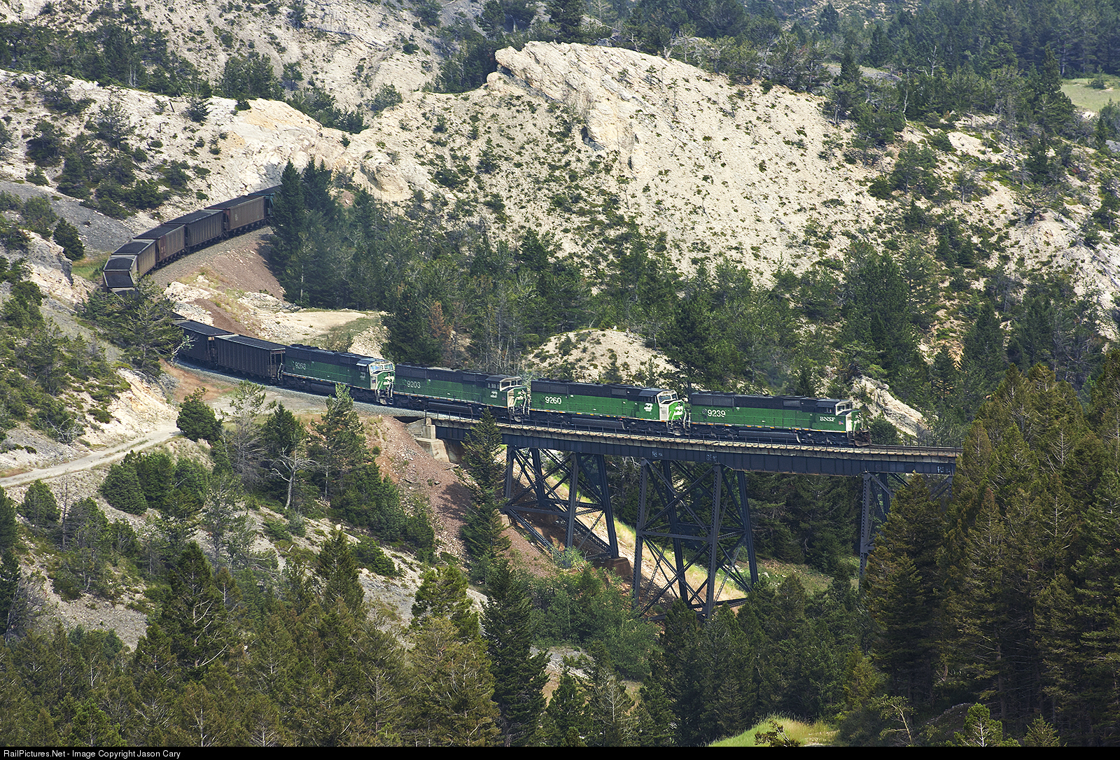 Cascade Green Quartet! Coal moving over Mullan Pass behind four Cascade Green ex. Burlington Northern SD60Ms! The sound of big DC motors exploding out of Skyline Cut and over the Austin Creek Viaduct was quite a sight and sound to behold! It was like a scene straight out of 1993!