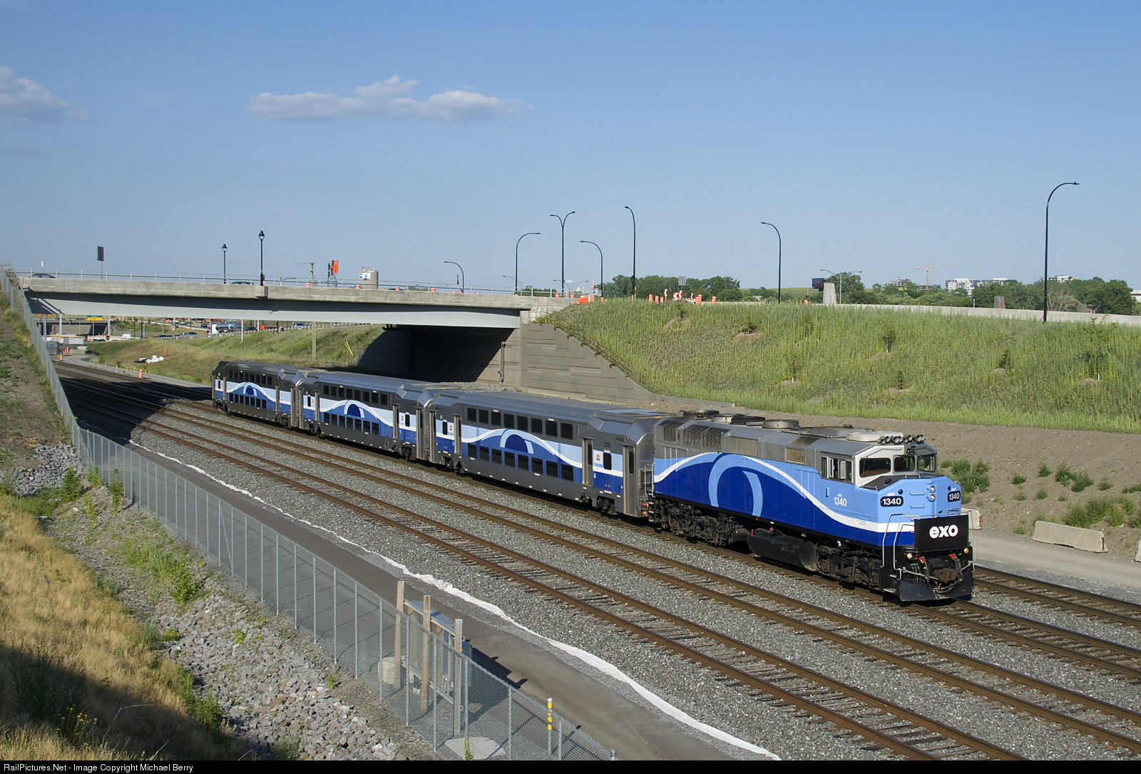 The three cars and F59PH making up EXO 1211 have next to no EXO markings as they head west on CN's Montreal Sub.