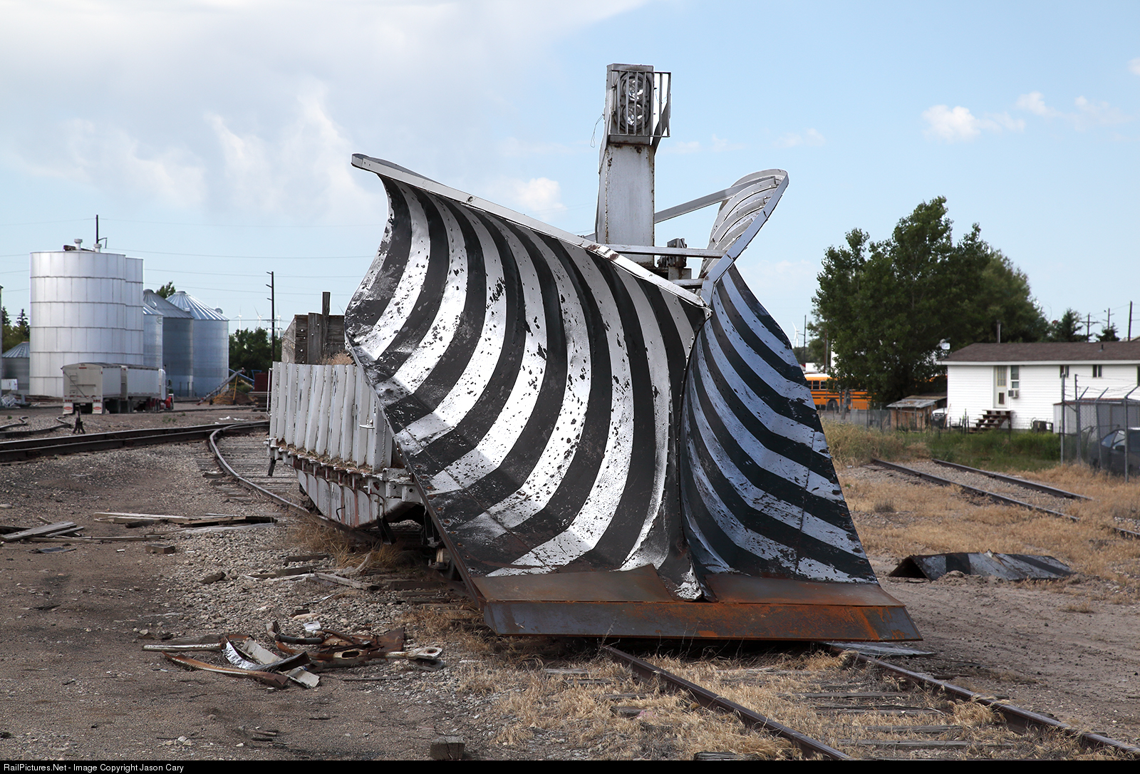 The Union Pacific Wedge Plow 900000 sits along a spur track at Ririe, Idaho along a former Union Pacific Branch, now part of Watco. The plow seems to have not seen service in quite sometime.... A nice relic of railroad history.