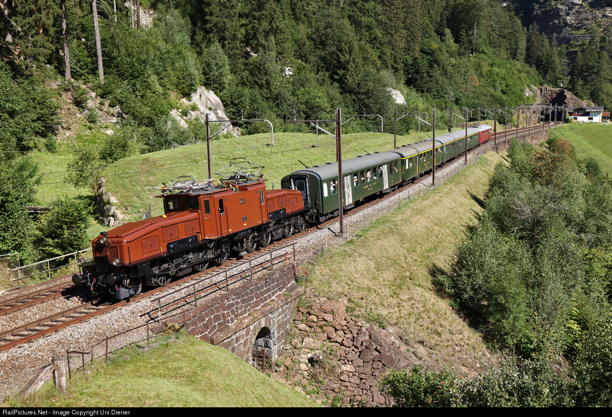 | The 1919 built Ce 6/8 II 14253 of SBB Historic is pulling the adventure train San Gottardo from Erstfeld to Lavorgo on the famous Gotthard line. |