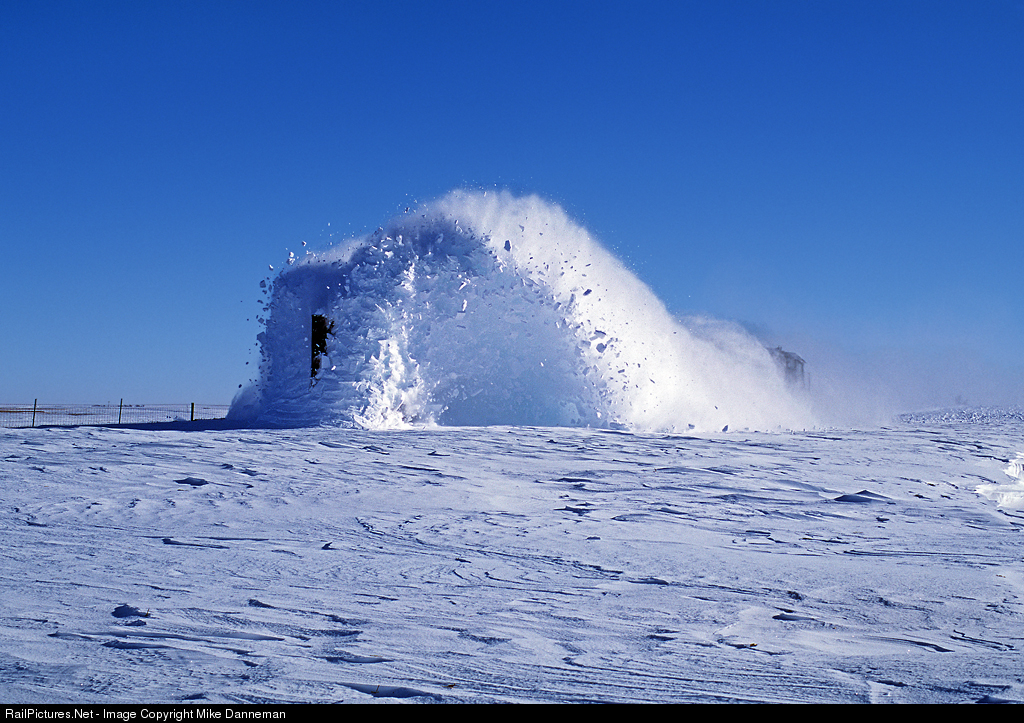 Kyle Railroad plow No. MWK 06 slices through deep snow west of Edson, Kansas, on January 2, 2007. Needless to say, visibility for the crew in the pushing locomotives is non existent when plowing through snow this deep.