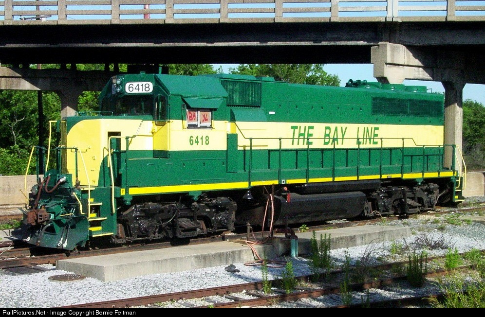 | The Bay Line GP40-2 #6418 sitting in the CSX Yard awaiting interchange to The Bay Line Railroad. #6418 was built as DT&I 418 and renumbered to GTW 6418 prior to being acquired by The Bay Line |