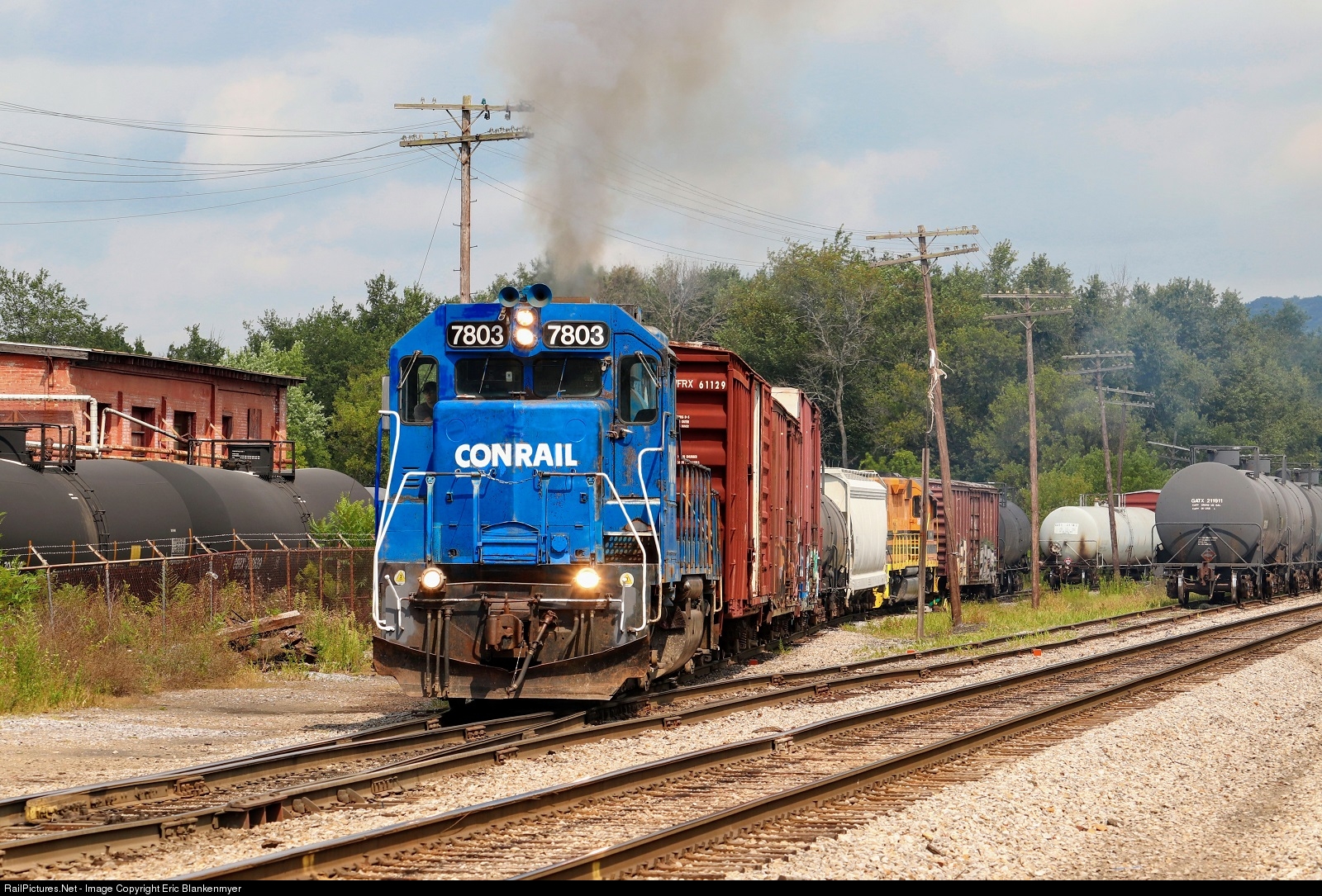 | A blast from the past, quite literally! BPRR 7803 wearing its near original appearance as Conrail 7803, gives a great look at how railroading used to be decades ago. The locomotive is working a local industry to the town, and gives a nice show as it pulls back out onto the main to attach onto another cut of cars. |