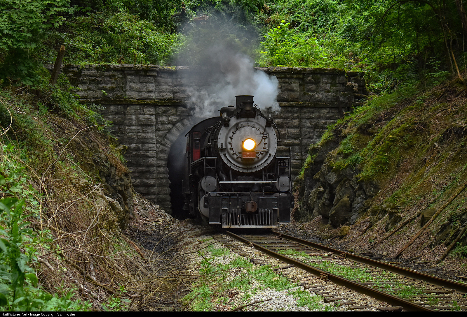 SOU 4501, a 2-8-2 “Mikado” type steam locomotive, leads a TVRM excursion through the Missionary Ridge Tunnel.