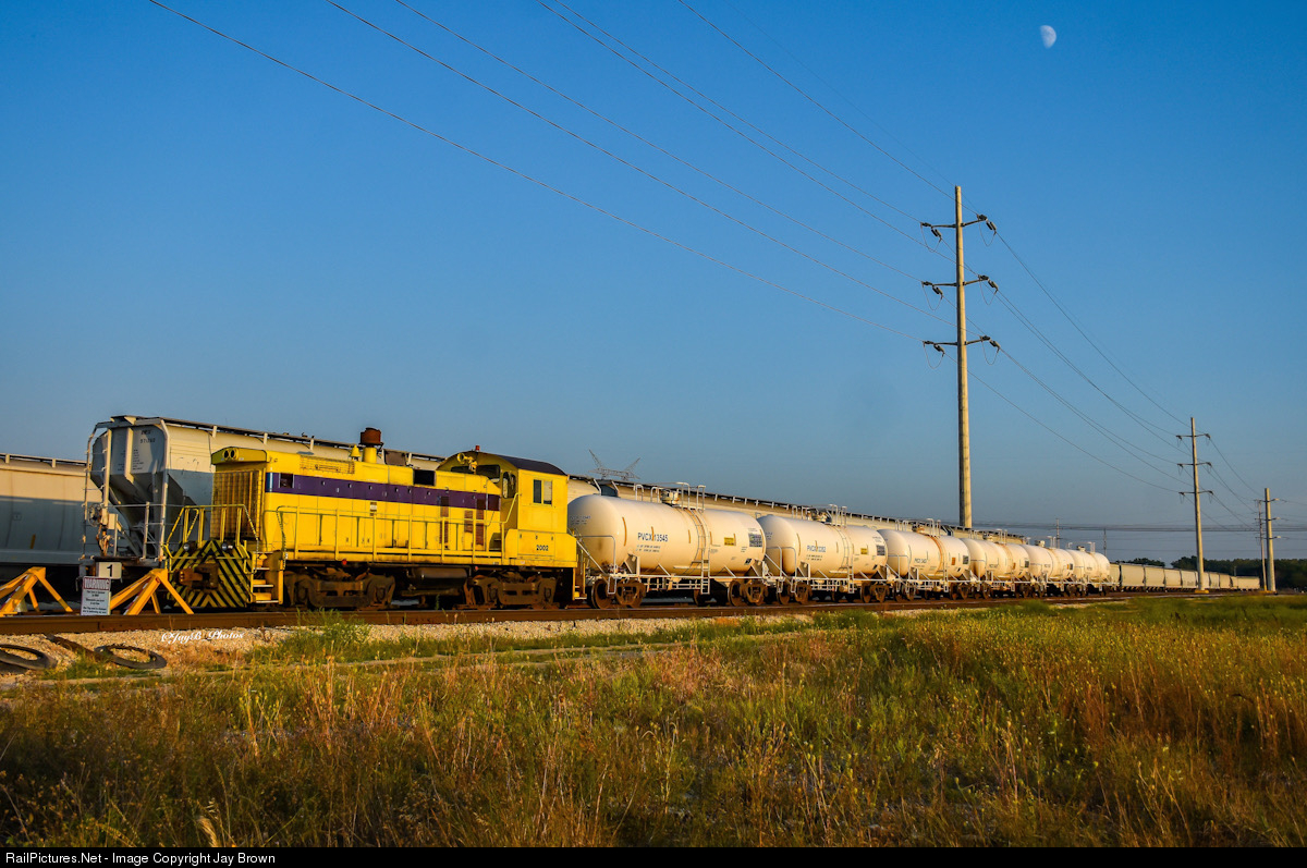 | Not sure on the railroad, but an SW switcher rests in the Hoffman Transportation plant in Channahon, attached to tank loads. |