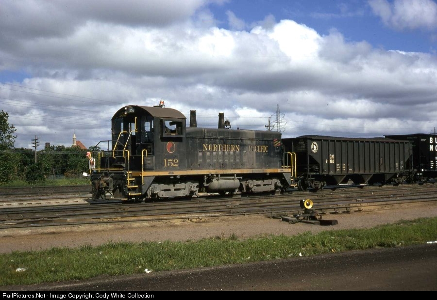 | Northern Pacific SW1200 152 switching in Minneapolis MN July 1970. The 152 was built in July 1957 and has yet to be renumbered BN 211 in this photo. This unit made it into the BNSF and was renumbered 3542 but retirement came in 2007. Marvin Neilsen Photo from my Collection. |